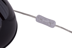 At its foundation, a substantial black base anchors the lamp, providing stability and grounding its upward ascent. As the eye follows the sleek stem upwards, it gradually begins to lean, creating an intriguing sense of movement and dynamism.
