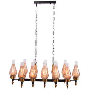 An exquisitely crafted lighting design, this chandelier stands out from the crowd with its distinct build and colour palette. A modern marvel with a contemporary twist. The chandelier flaunts a sleek and slender metal frame with a stainless steel finish that holds amber-tinted glass body.