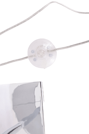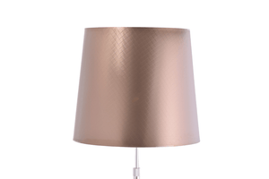 The lamp's frame, crafted from lustrous chrome, exudes contemporary chicness and durability. Its slender yet sturdy construction provides a striking contrast to the softness of the shade, adding a touch of minimalist sophistication to any space.