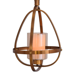 Suspended in sophistication, this pendant light showcases a captivating design. The oval frame, bathed in an antique bronze finish, exudes vintage charm. At its center, a clear glass enclosure reveals an inner sanctuary of frosted glass, delicately cradling the light source. When illuminated, the frosted glass emanates a soft, diffused glow, creating an ambiance of warmth and elegance.