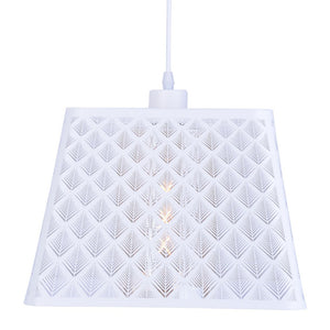 This exquisite fixture features a white shade adorned with delicate leaf patterns, allowing beams of light to gently filter through, casting enchanting shadows and adding a touch of natural beauty to your space. The inner amber glass, encasing the light source, bathes your surroundings in a warm and inviting glow, creating a harmonious ambiance. Bring the serenity of the outdoors into your interior decor with the Midrib Pendant Light, where elegance meets the charm of nature.