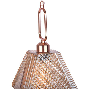 The pendant light captivates with its unique geometry and warm amber glow. The three-dimensional hexagon shape adds depth and dimension to the light, making it a fascinating centerpiece in any space. The amber textured glass exudes a sense of richness and allure, creating a soft and inviting ambiance when illuminated.