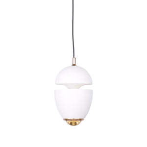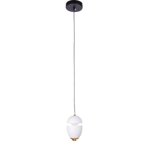 A pendant light in the shape of an egg with a thin portion in the middle would have a sleek and elegant design. The pendant light is smooth and rounded, with a gentle tapering towards the center where the thin portion is located. This thin section would provide a unique element to the design, creating a sense of lightness and delicacy. The light source would be positioned at the bottom of the pendant light, casting a warm and inviting glow that is diffused by the smooth surface. This pendant light would be perfect for modern and minimalist interior spaces, adding a touch of sophistication and style to any room.