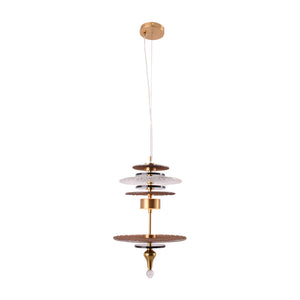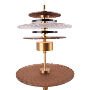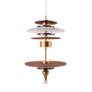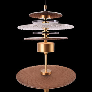 The Tiered Precious Rock Pendant Light is a striking modern fixture that adds a unique visual flair to any space. Featuring a series of tiered, textured glass and metallic discs, this pendant light creates a dynamic layering effect that catches the eye from every angle. The combination of brass accents and hammered glass discs gives it a sophisticated yet contemporary look, ideal for dining rooms, entryways, or living spaces. The light emanates softly through the layers, providing both ambient lighting and a decorative focal point. Perfect for those looking to add a touch of luxury and artistic design to their interiors.