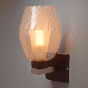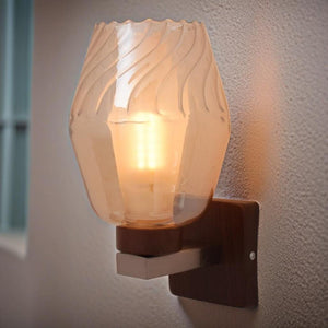 This wall light seamlessly marries natural warmth with contemporary elegance. The wooden frame, with its rich and inviting wood color, exudes a cozy and organic charm. Contrasting this warmth, a sleek silver arm extends from the frame, introducing a touch of modern sophistication.