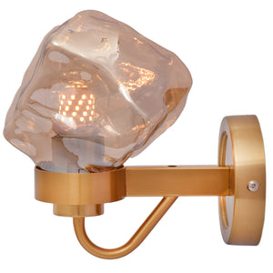 The primary fixture features a gold antique bronze frame, which exudes a sense of vintage luxury and classic design. Extending gracefully from the frame is a straight arm, which not only provides structural support but also offers a sleek and elegant touch to the design. At the end of this arm, an amber shade becomes the focal point. The amber shade resembles a precious amber stone, complete with intricate indents and cuts that emulate the organic beauty of the natural world.