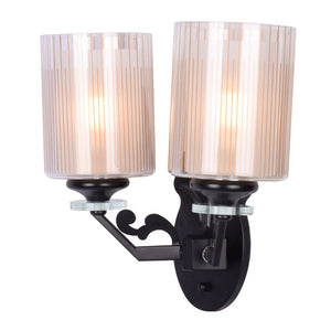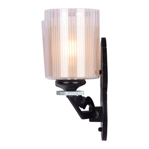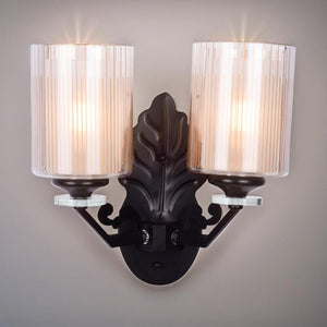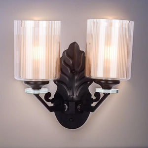 Introducing a captivating wall light that seamlessly blends nature-inspired design with artistic flair. This exquisite lighting fixture features a black leaf-shaped backplate that serves as the foundation for two shades adorned with delicate brown lines.